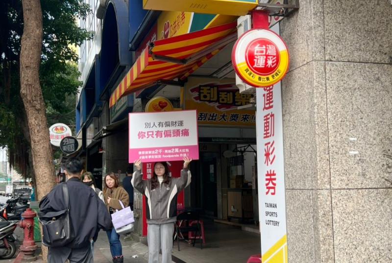 威力彩頭獎金額上看5.7億元,發財氣氛瀰漫全台,卻有人選擇用最直白的方式戳破幻想。日前有民眾在彩券行前目擊一場吸睛的街頭舉牌行動,只見舉牌上寫著「別人有偏財運,你只有偏頭痛」,引發網友討論。