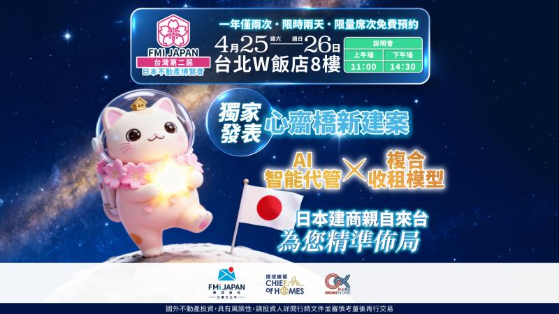 「第二屆台灣日本不動產博覽會」將於4月25日至26日在台北W飯店盛大登場。本次活動由日本建商 FMI JAPAN 團隊親自來台,現場解構大阪核心資產的增值潛力,提供投資者第一手的專家導析。
