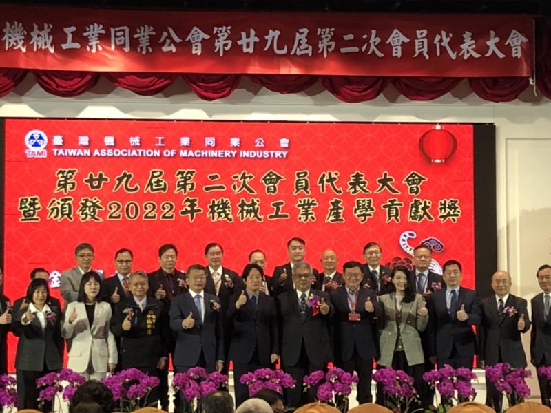 台灣機械工業同業公會3月24舉行會員代表大會,包括副總統賴清德、立法院副院長蔡其昌、立委高虹安、謝衣鳳、黃國書、台中市副市長令狐榮達等人皆受邀出席,賴副總統表示,2017年台灣機械業產值破新台幣兆元開始,已經連續5年破兆,去年總產值達到1.3兆元,感謝工具機和機械國家隊,在COVID-19疫情下生產口罩,不僅協助台灣防疫,「台灣能幫忙」(Taiwan can help),也讓國際社會感受到台灣良善的力量。
