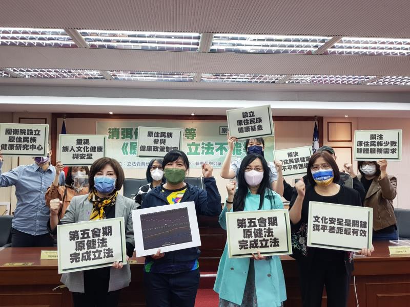 臺灣原住民族長期照顧服務權益促進會邀集原住民族健康法學生團體、台灣原住民醫學學會、新竹市原住民身心障礙者協會等民間原住民族健康聯盟,15日於立法院召開「原健法催生記者會」,強調《原健法》立法不能等。立法委員伍麗華、吳玉琴、陳瑩及賴惠員委員出席並支持民間團體訴求。